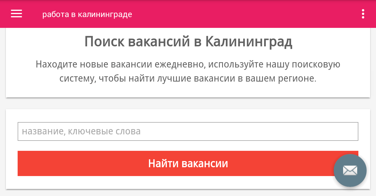 Находите миллионы вакансий из тысяч корпоративных сайтов, порталов по поиску работы и газет калининграде, используя всего одну поисковую форму. Используя портал Работа в калининграде, вы с легкостью найдете нужные вакансии в калининграде, России, ищу работу