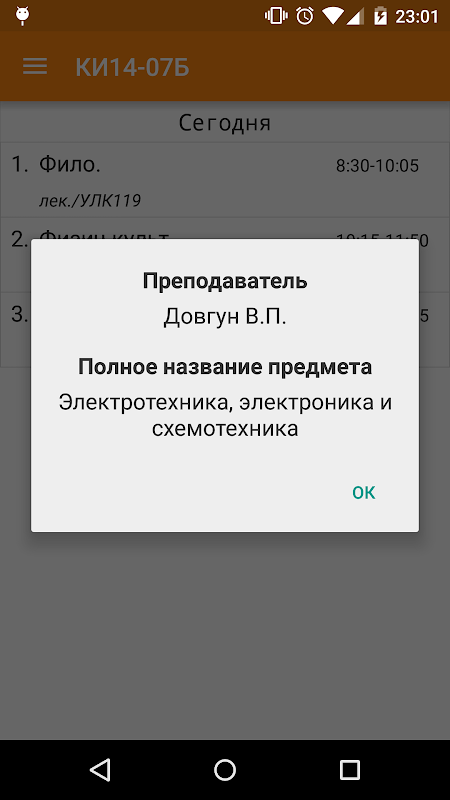 Приложение покажет расписание твоей группы на сегодня и на завтра.