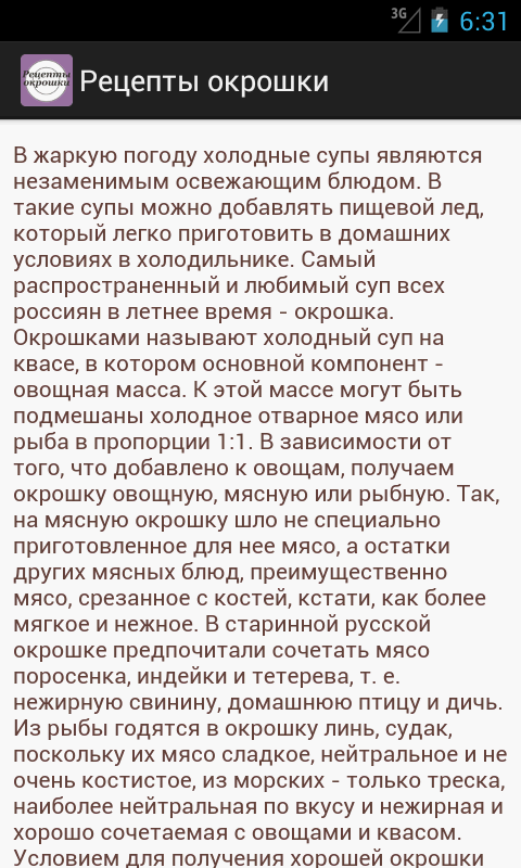 "Рецепты окрошки" НЕ ТРЕБУЮТ дополнительного подключения к Интернет!