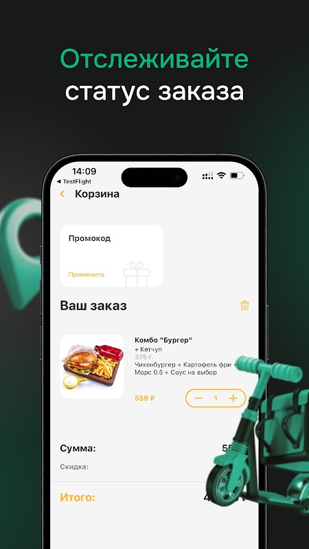 Siempre a mano, en la aplicación - historial de pedidos, nuestras promociones. Recordaremos sus direcciones de entrega, ¡la reemisión será aún más fácil y rápida!