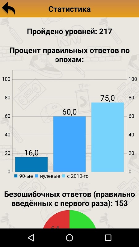 А ещё в игре есть статистика и достижения! Оцените свои познания в русском рэпе! На сколько вопросов Вы ответили без подсказок? Как хорошо Вы знаете рэп-альбомы? В рэп-культуре какого десятилетия Вы разбираетесь лучше всего? Узнайте ответы на все эти вопросы, преодолев долгую и увлекательную дорогу от популярных рэп-исполнителей до представителей андеграунд-сцены!