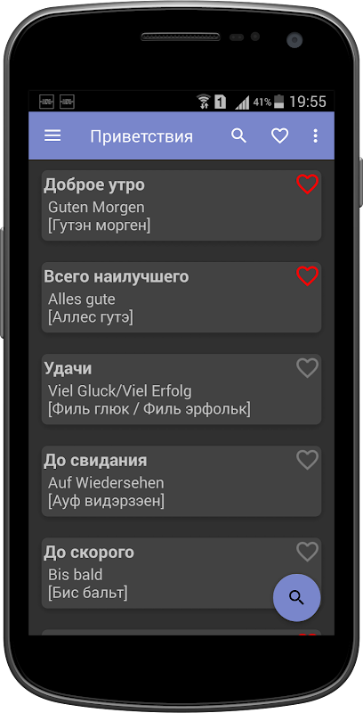 libro de frases ruso-alemán gratuito está diseñado para aquellos que no son muy buenos conocimientos de la lengua alemana, que facilitará la comunicación y la comprensión. Libro de frases funciona en el modo fuera de línea y no requiere conexión a Internet para funcionan.También vas en un viaje a Europa o ha planeado un viaje a la ciudad alemana, nuestro libro de frases ruso-alemán es exactamente lo que necesita.