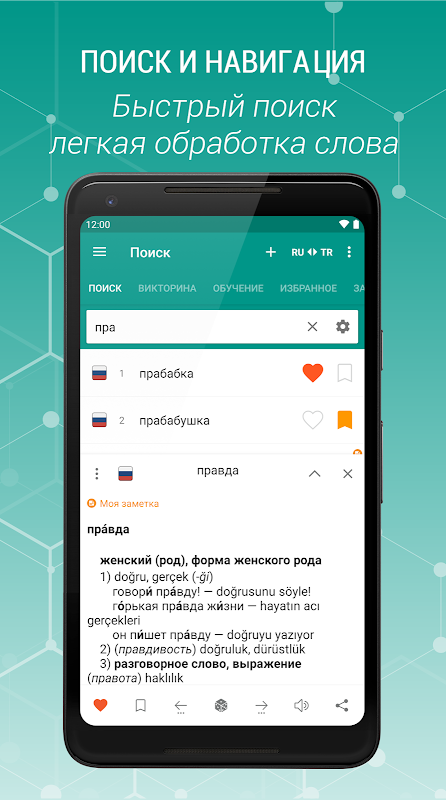 diccionario de la línea gratuita con interfaz sencilla y funcional, que abarca más de 75.000 palabras --ruso-turca y turco ruso