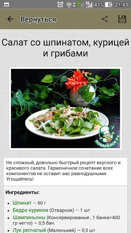 Información de Салаты с курицей – рецепты APK