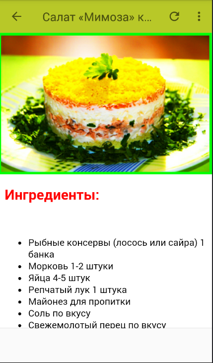 Información de салат мимоза APK
