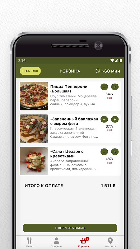 Aplicación móvil de café familiar Viva Oliva
