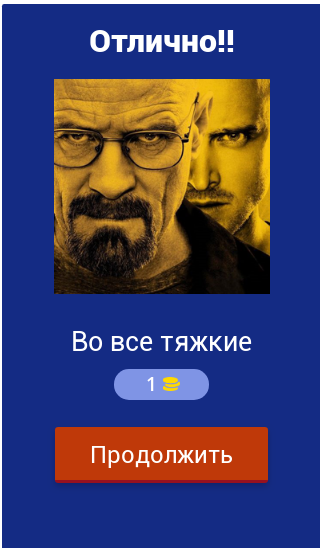 В игре «Сериалы ТОП 50 - Тест о Лучших Сериалах» есть система подсказок, она позволит вам пройти уровень с сериалом, название которого вы не знаете или не можете вспомнить.