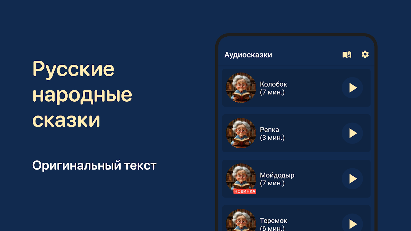 Si está buscando pequeños audiolibros modernos para niños, ¡esta aplicación de cuento de hadas está creada para usted! En nuestros cuentos de hadas, nadie se come a nadie, el bien siempre vence al mal y la trama está llena de emociones exclusivamente positivas. Al escuchar nuestros libros infantiles y cuentos para dormir de forma gratuita, su hijo no solo se tomará un descanso del ajetreo cotidiano, sino que también absorberá todos los valores positivos que llenan cada pequeño audiolibro y canción de cuna. Además de cuentos modernos y cuentos, la aplicación contiene cuentos populares rusos para niños: Kolobok, Nabo, 12 meses, Teremok, Moydodyr, Tres osos, el cuento del pescador y el pez y otros. ¡Escuche cuentos de audio antes de dormir en formato de radio para niños y duerma dulcemente!