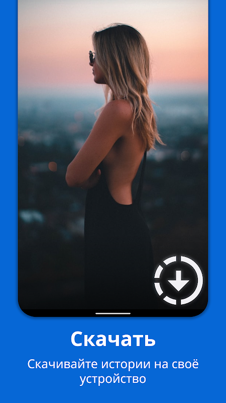 Para descargar el historial, debe pasar por la autorización en el contacto, seleccionar el historial requerido en la lista de los disponibles o buscar el enlace del usuario, para ello debe especificar el enlace en el campo correspondiente. Después de eso, se abre un carrusel de historias, donde puede seleccionar el que necesita y hacer clic en el botón Descargar (que se muestra como una flecha en la parte inferior de la pantalla).
