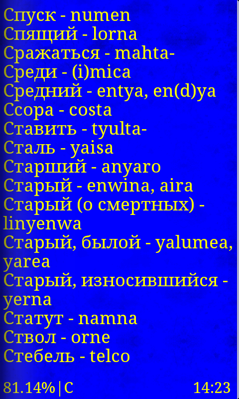 Перед вами - русско-эльфийский словарь одного из языков, разработанных профессором Дж.Р,Р,Толкином - языка под названием Квенья. Думаю, такой "словарь в кармане" будет очень полезен толкинистам, ролевикам, да и просто интересующимся.