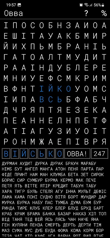 Slovva es un crucigrama diario. Cada día recibes un conjunto de 144 cartas. Tu tarea es encontrar entre ellas tantas palabras ucranianas reales con una longitud de 3 a 7 letras como sea posible. Cada jugador recibe un conjunto idéntico de cartas el mismo día. Para que puedas competir con tus amigos y familiares. La característica principal de este juego es el modo ESTRELLA en el que puedes jugar juegos ilimitados.