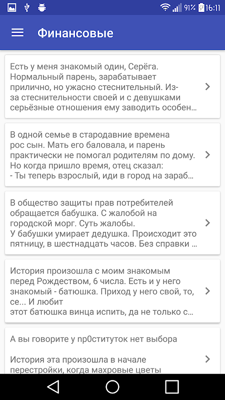 Разделы смешных историй содержащиеся в приложении: