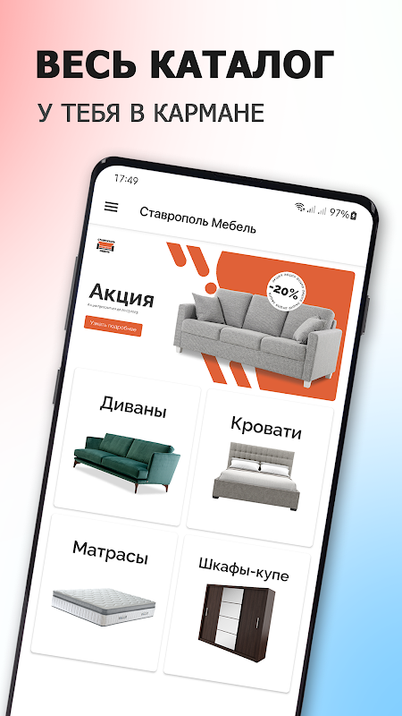 La tienda en línea "Muebles de Stavropol" lo ayudará a comprender la gama de muebles, realizar un pedido y organizar la entrega directamente en la aplicación.