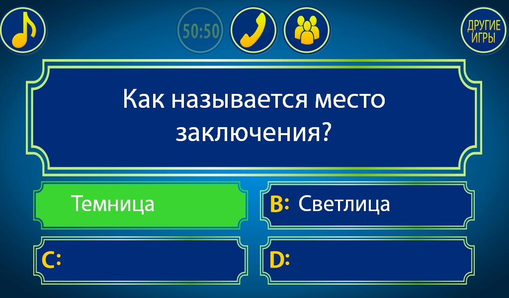- "Звонок другу"- вам высвечивается поле с правильным ответом. В данном случае "правильный ответ"- это то, как считает друг (он может и ошибаться);