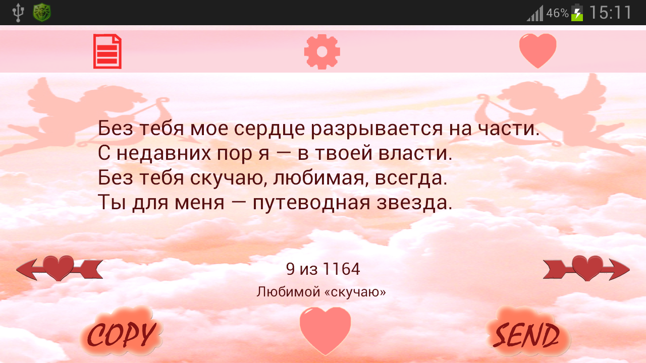 Вы также можете добавить понравившуюся стих (пожелание) в избранное, скопировать, отправить смс Любимому или Любимой, на вконтакте или другие приложения.