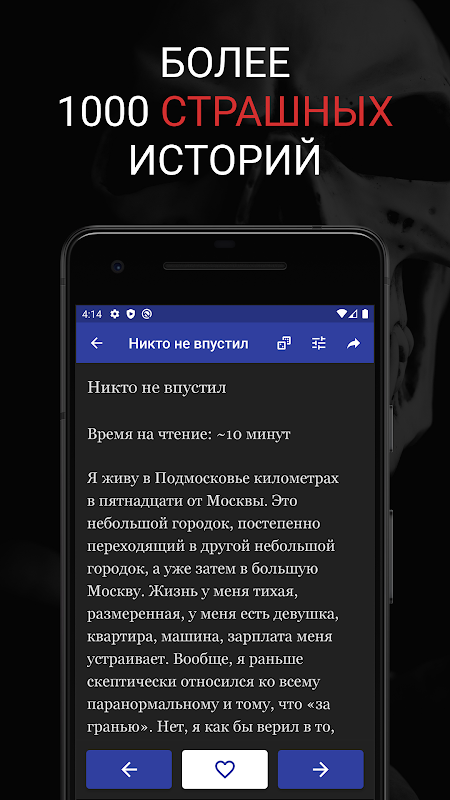 - С нашим приложением у вас есть возможность читать страшилки без интернета каждый день