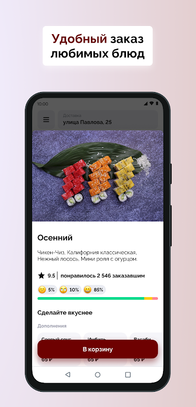 En nuestro servicio de comida a domicilio preparamos deliciosos panecillos, así como pizzas de masa fina y hamburguesas. Llevamos más de 5 años trabajando en el ramo de la comida a domicilio, durante este tiempo nos hemos ganado la confianza de muchos clientes. Amamos lo que hacemos y queremos que nuestros huéspedes sean felices. Por lo tanto, siempre tratamos de encontrar un enfoque individual para cada huésped, tener en cuenta todos sus deseos y hacer todo lo posible para que esté satisfecho. Para nosotros es muy importante hacer que nuestros platos sean lo más sabrosos posible, para ello utilizamos únicamente productos frescos y de alta calidad en nuestro trabajo, lo que nos garantiza una alta calificación entre los competidores. Todos los platos se preparan exclusivamente con productos frescos según recetas originales. Nuestros cocineros trabajan en estricta conformidad con las normas sanitarias y estándares de calidad. Con nosotros puedes pedir delivery a cualquier parte de la ciudad, el mensajero te lleva la comida a tu casa u oficina.