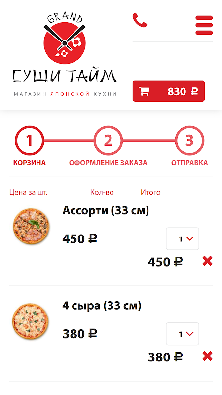Aplicación móvil para el pedido de la entrega de alimentos tienda de comida japonesa