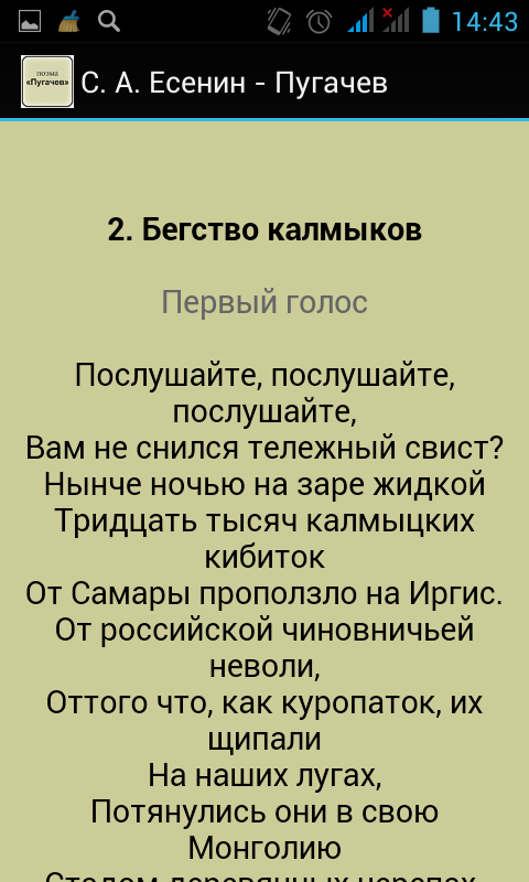 Поэма «Пугачёв» описывает сложный исторический период. В ней раскрывается сущность мятежной, революционной стихии, скрытая в предводителе крестьянского восстания – Е. Пугачеве.
