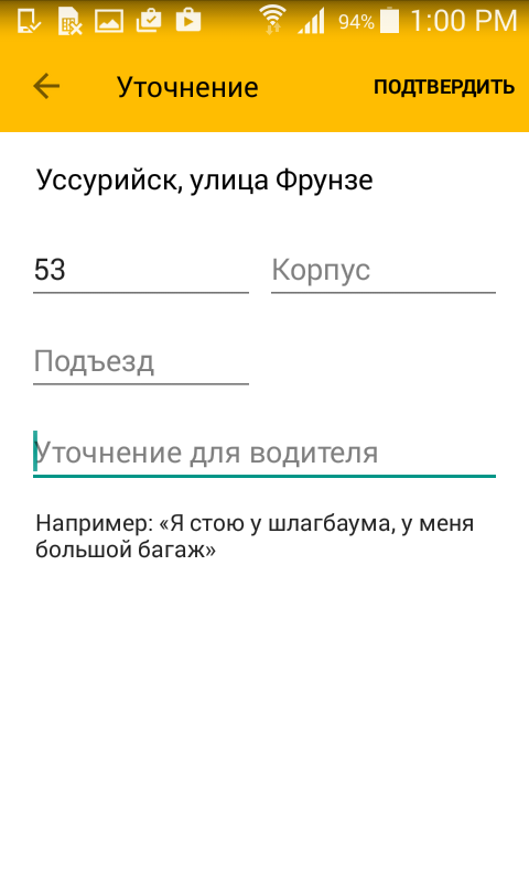 - Звуковой сигнал проинформирует вас о прибытии такси;