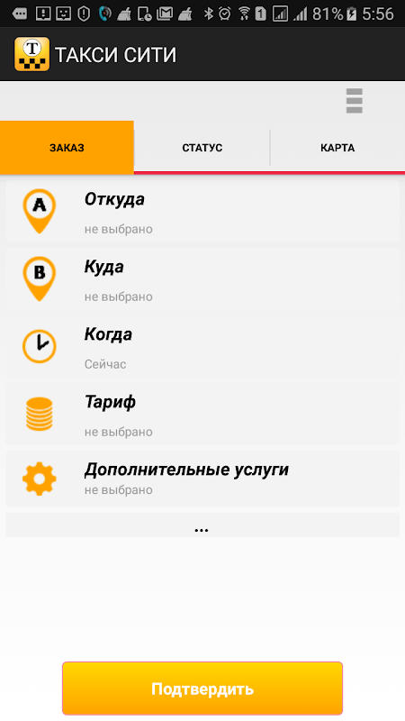 - Вызов такси без звонка диспетчеру. Отметьте точку на карте, не нужно писать длинный адрес вручную;