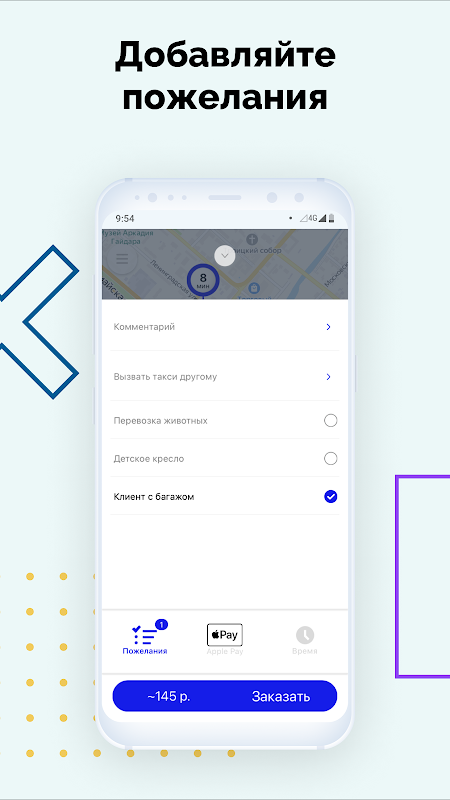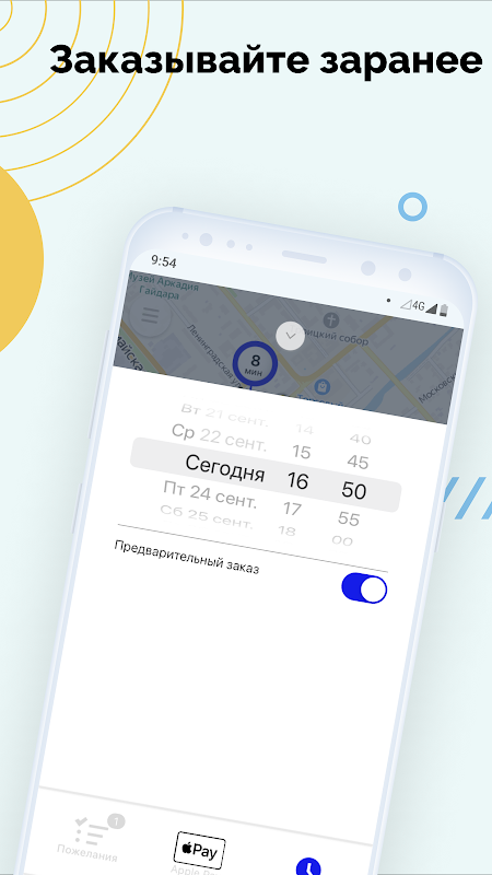Ya no necesita pasar más tiempo comunicándose con el despachador, pedir un taxi a través de su teléfono inteligente en cualquier lugar: en una reunión, en una fiesta ruidosa, en un cine, en un restaurante o en un bar. No tiene que esperar: se le servirá un taxi cuando lo necesite.