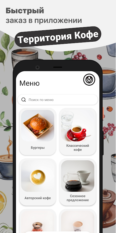 Cómo realizar un pedido en la aplicación “Territory Coffee”: seleccione los artículos que desee del menú, agréguelos al carrito y vaya a la pantalla de pedidos (haciendo clic en el icono del carrito).