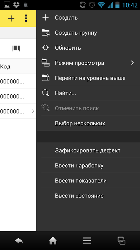 Aplicación móvil para 1C: MRO. Únete a defectos indicadores estados.