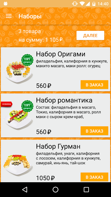 – оформление заказа на доставку интересующих блюд;