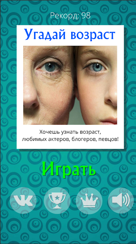 Угадай мой возраст - Ты можешь сравнить свой возраст со звездами в игре, проверь на сколько знаменитости старше тебя. Возможно попадутся даже люди, которые у которых будет твоя дата рождения.