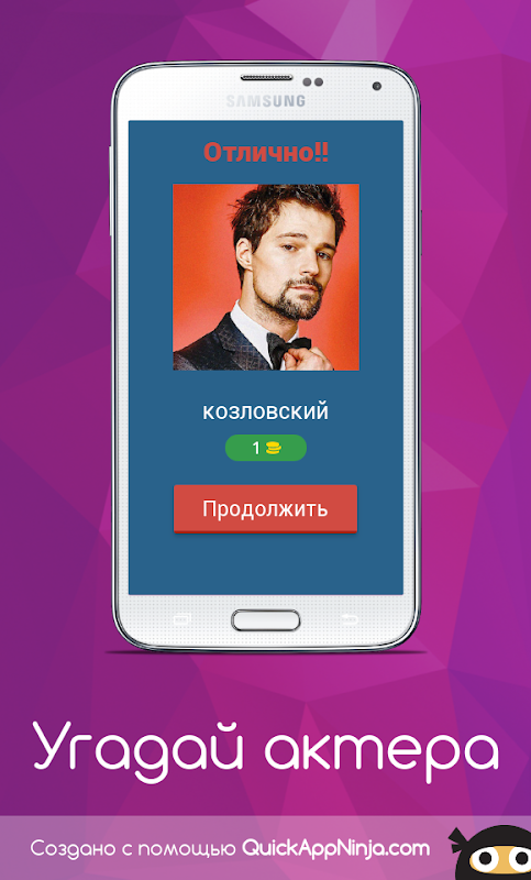 Угадай российского актера - это классическая андройд-викторина, в которой тебе предстоит угадать знаменитых актеров по фотографии. Фотографии актеров скрыты за плитками. Постарайся угадать фамилию актера, открыв как можно меньше плиток. Чем меньше плиток ты открываешь, тем больше монет получаешь.