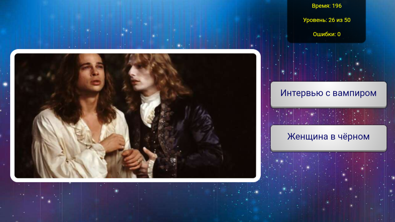 Вам будет дана 1 картинка из фильма вы должны будете выбрать 1 верный вариант из 2 предложенных. За неверный ответ будет начисляться время 5 секунд к вашему таймеру, поэтому у вас будет стимул чтобы не ошибиться и пройти все уровни без ошибочно, после вы можете просмотреть свой рейтинги и узнать вашу оценку о знании киноленты. Играйте еще раз, чтобы увеличить количество сыгранных игр в рейтинге и выйти на новый уровень эрудиции в знаниях различных фильмов!