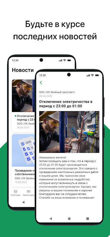 La aplicación móvil está disponible solo para aquellos propietarios cuyas casas son atendidas por la empresa de gestión "UK Zeleny Prospekt" y que tienen una cuenta en el servicio de Internet KVADO.RU.