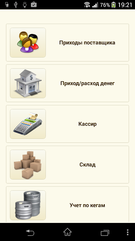 Формирование отчетов по продажам, остатки и движение товаров, отчет по кассе, поступлениям от поставщиков, учет продаж по кегам.
