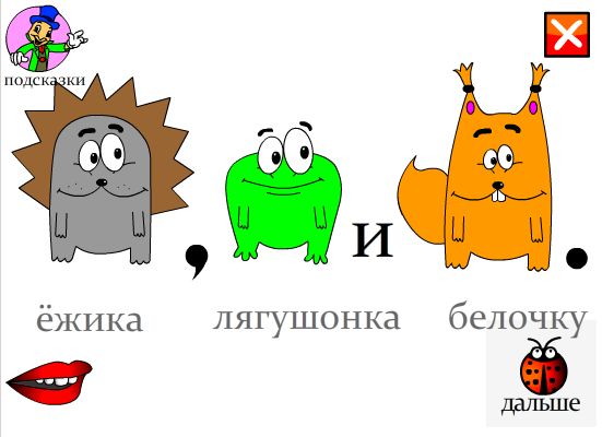 Una historia interactiva para los niños. En la forma de un juego enseña sustantivos correctos.