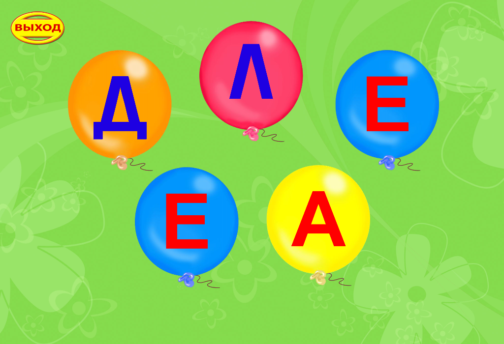 Aplicación al estudio de las letras. El niño se le pide que presione sobre los globos, que se dibujan en diferentes letras. Al hacer clic en el balón, la carta se cambia a otro.