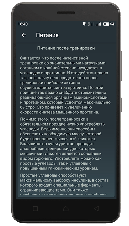Так же есть раздел наполненный информацией о спортивном питании, в этих статьях у казана информация о разных видах спортпита. Для каждого вида спортивного питания указаны определение, функции, способы приема, полезные способности, а так же предосторожности по употреблению.