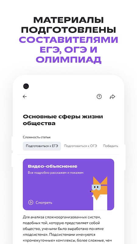 • Una base de datos interminable de artículos, más de 4000 temas y más de 500 lecciones en video, para prepararse para el Examen Estatal Unificado, OGE (GIA) y las Olimpiadas