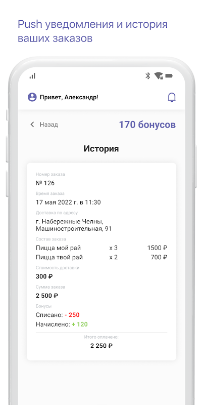 En la aplicación, puede realizar un pedido de manera rentable: por ejemplo, obtener una entrega gratuita o un plato como regalo utilizando un código promocional. Enviamos notificaciones push semanales con promociones y regalos rentables.