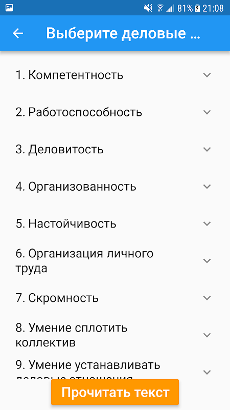 Не обязательно выбирать каждую из них, программа позволяет гибко сочетать необходимые и уместные для конкретного сотрудника деловые характеристики!
