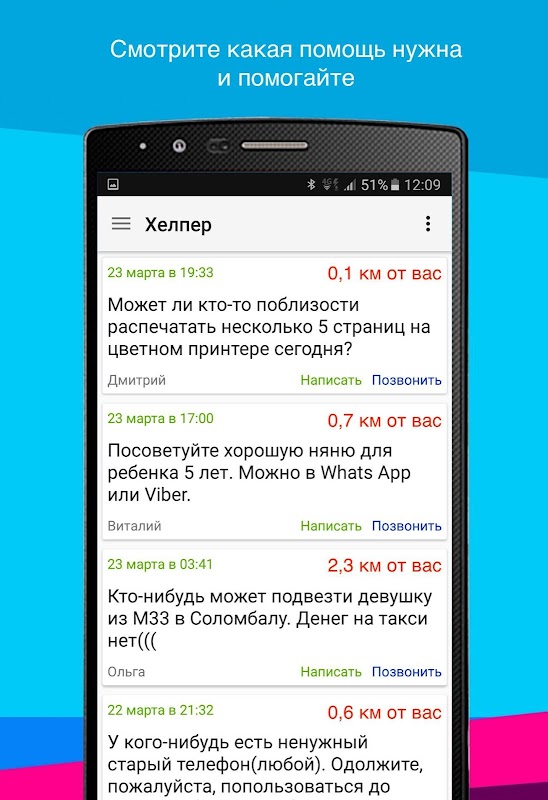 Используйте приложение для поиска любой помощи и помогайте сами.