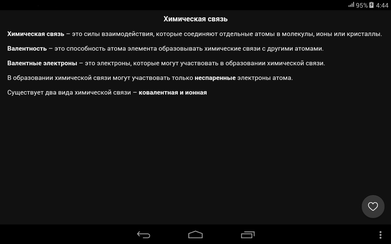 Легкий и удобный справочник по химии с темной темой поможет вам подготовиться к ЕГЭ и ОГЭ (ГИА), а также к другим экзаменам по химии. Содержит в себе большое количество шпаргалок, разбитых по темам.