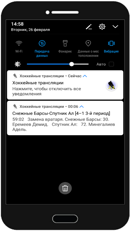 Cualquier juego de hockey se puede incluir en la notificación. Luego, la transmisión de hockey de texto se mostrará en las notificaciones. Cada evento de partido de hockey. Si es necesario, puede habilitar las notificaciones para varios partidos de hockey.