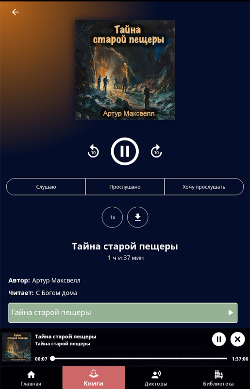 Nuestra aplicación guarda automáticamente su progreso de escucha, lo que le permite continuar fácilmente donde lo dejó.