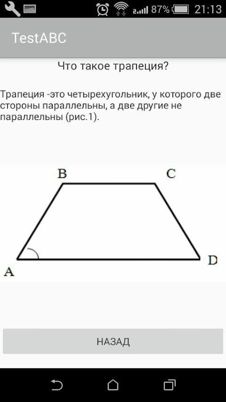 В тестах представлены вопросы по теории геометрии (определения, теоремы и аксиомы). Приложение поможет выяснить свой уровень подготовки по геометрии. Будет полезно, в основном, учащимся и поможет в любой свободный момент времени систематизировать знания.