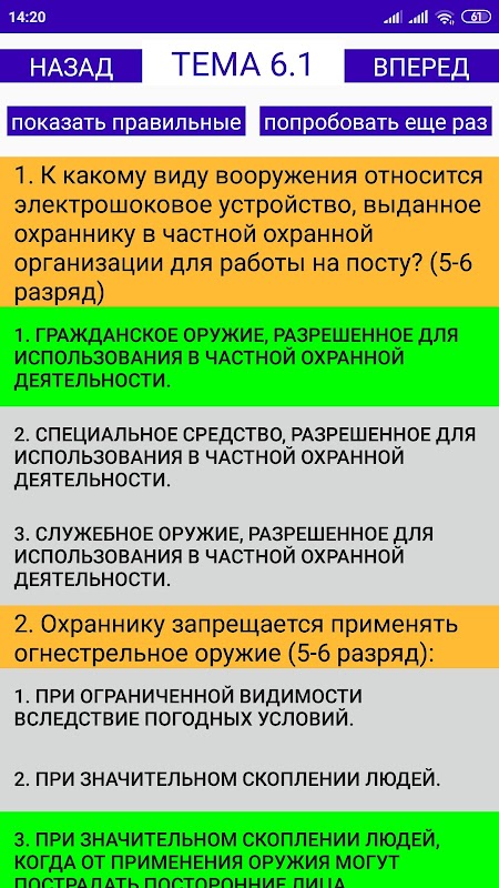 Имеются вопросы и правильные ответы на охранника 4, 5, 6 разрядов.