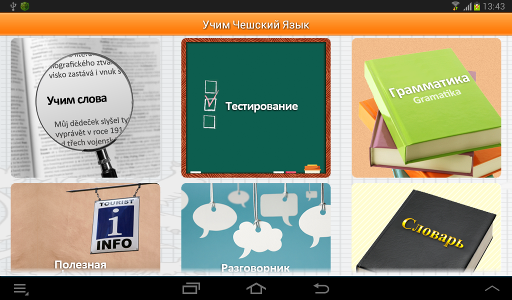 - обучение 1500 слов происходит через флэш карты и разделены на разделы. Это позволит быстро и легко освоить чешский язык.
