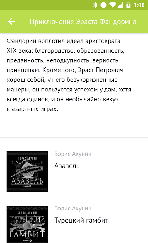 С нашим приложением самые популярные книги и долгожданные аудио новинки можно слушать совершенно бесплатно! Можно фильмы онлайн смотреть, а можно истории про Фандорина оффлайн прослушать.