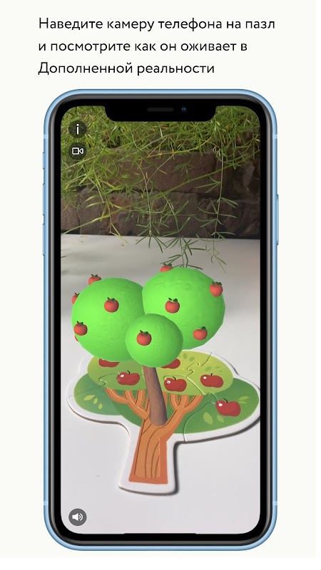 Para activar las funciones de realidad aumentada, instale esta aplicación. Arme la imagen del rompecabezas o pídale al niño que lo haga, luego apunte la cámara del teléfono inteligente a la imagen y cobrará vida. En el contexto de los sonidos de la naturaleza, el narrador en palabras simples le explicará al niño el proceso de transformación de una mariposa y una semilla de manzana, lo que ayudará a sumergirse en el mundo natural, incluso para los niños con discapacidad visual.