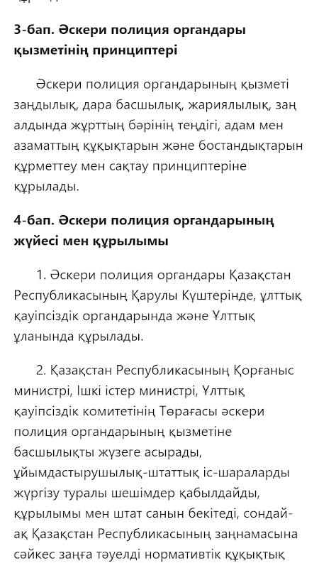 Sobre los cuerpos de la policía militar. Ley de la República de Kazajstán
